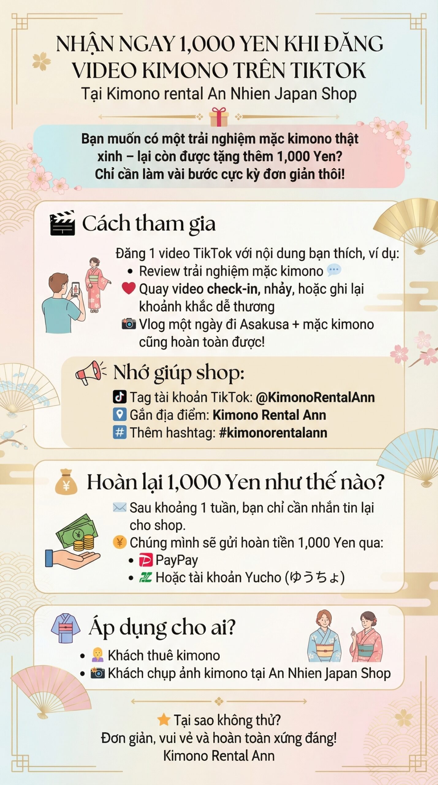 NHẬN NGAY 1,000 YEN KHI ĐĂNG VIDEO TIKTOK VỀ KIMONO RENTAL ANN